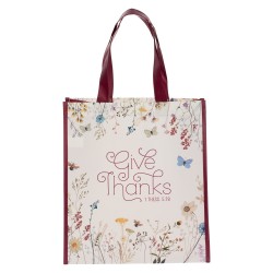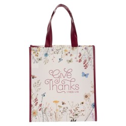 Tote Bag-Give Thanks-Burgundy/White Floral