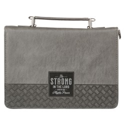 Bible Cover-Classic Gray Be Strong Josh. 1:9-Med