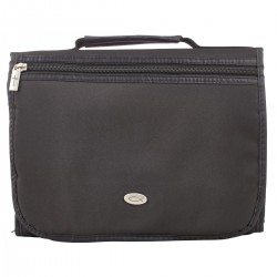 Durable, polyester Bible cases with three sections. One section can be zipped independently, creating practical ways to store notes and study books. Includes a cellphone pouch, two pen loops, four credit card slots and a small zipped mesh inner pocket. Free notepad and pen/marker.