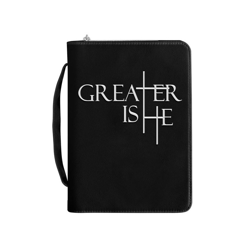 Bible Cover-Greater Is He (7" x 10" w/ 2" Gusset)