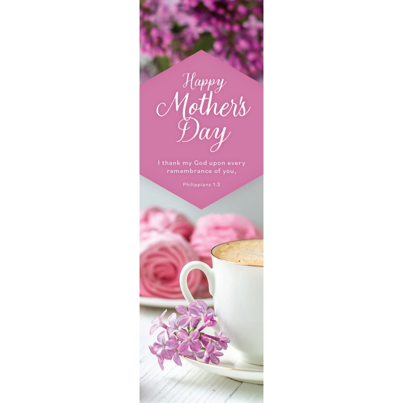 Broadman Church Supplies Mother's Day Bookmark is a great gift of encouragement and designed as a gift for Mothers on Mother's Day. The beautiful 2 x 6 1/2" sized bookmark has a beautiful image, is designed for use as an inspirational marker and features scripture from Philippians 1:3 of the KJV translation. It is sold in shrink-wrapped packages of 25 identical pieces.