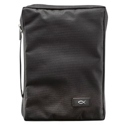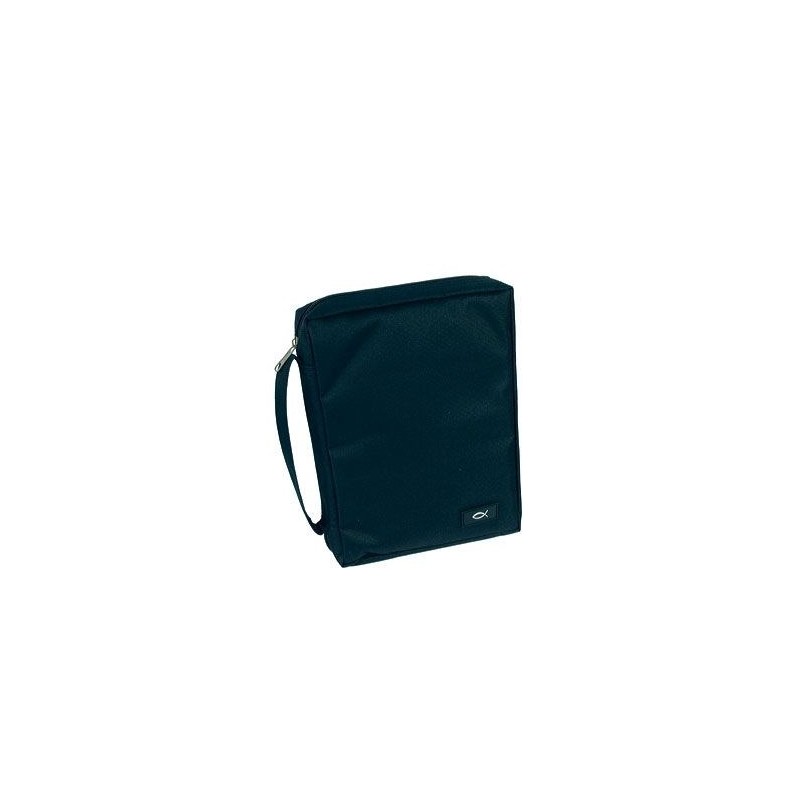 These Bible cases are manufactured from high-grade polyester and have a fish label. They feature a nylon zipped mesh inner pocket with pen loop, as well as a convenient extra outer pocket.