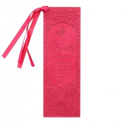 Scripture from Hebrews 11:1 is inscribed into the pink faux leather body, adorned with a debossed butterfly and fleur-de-lis design. Made from a quality man-made material with the look and feel of real leather (trade name LuxLeather). These pagemarkers / bookmarks have a nice weight to them, and a buttery soft feel. There is an attached ribbon.