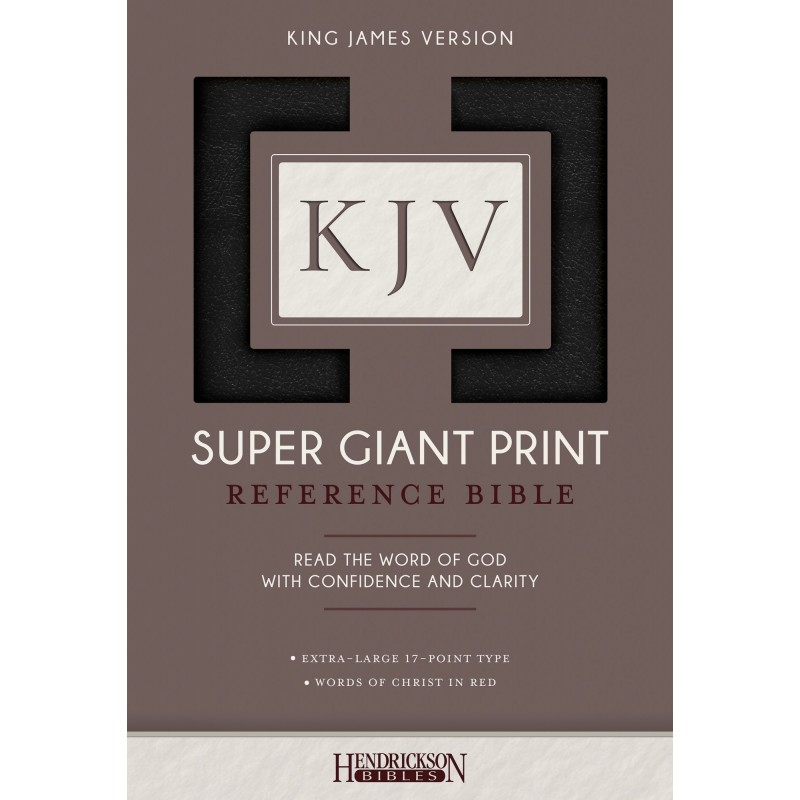 Read the Word of God with confidence and clarity! The brand-new King James Version Super Giant Print Reference Bible, with generous 17-point type, is a readable choice for those who need a larger font. Competitive pricing and many excellent features set this beautiful Bible apart, and make it a welcome edition to Hendrickson's KJV Bibles line.