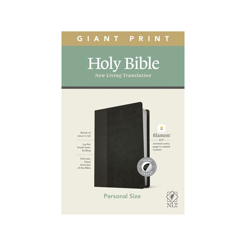 Bible Reading: IlluminatedThe new Tyndale NLT Personal Size Giant Print Bible, Filament-Enabled Edition, has readable text and an attractive layout in an easy-to-carry size. And while it has the same low price as basic, text-only Bibles, the NLT Personal Size Giant Print Bible offers much more. It not only features a bold new design and the trusted and much-loved New Living Translation (NLT) but also includes the groundbreaking Filament Bible app, which turns this Bible into a powerful study and devotional experience, offering more to expand your mind and touch your heart than you can possibly hold in your handat no additional cost, no additional bulk or weight. Read this Bible on its own, or dig deeper with the Filament Bible app. Use your mobile phone or tablet to connect every page to a vast array of related content, including:25,000 study notes350+ videos40+ maps and infographics400+ profiles and articles1,500+ devotionalsLibrary of worship musicSpecial features include:New, easy-to-read page designsFilament content linked to every page!Readable large printHandy, thin sizeWords of Jesus in redQuality lay-flat Smyth-sewn bindingTyndale Verse FinderPresentation pageRibbon markerGilded page edges