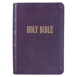 This King James Version Large Print Compact Bible combines easy in-hand portability with easy to read text. The handsome purple cover is embellished with a debossed filigree design. The tile is skillfully debossed and gold foiled. The same design elements are repeated on the spine of the Bible. The cover is constructed of quality man-made material with the look and feel of real leather (trade name LuxLeather). Gold gilt-edged pages enhance the beauty of the design. The Large Print Compact Bible text is comparable in size to the text in a standard size Bible. The nomenclature is used in Bible publishing to differentiate between typical Compact or Pocket Bible text size (7pt) and Large Print Compact Bible text size (8-9pt). Inside, you'll find a double-column format, words of Christ printed in red ink, concordance, a helpful Scripture verse finder by topic, a one-year Bible reading plan and 8 full-cover maps. Size: 4 5/8" (W) x 6 1/2" (H) x 1 3/8" (D) Text Size 8.5pt 1533 Gold Gilt-Edged Pages Faux Leather Flexcover Bound Lay-Flat Spine Attached Ribbon Page Marker Words of Christ in Red Ink Concordance Unique Scripture Verse Finder One-Year Bible Reading 8 Full-Color Maps Presentation Page