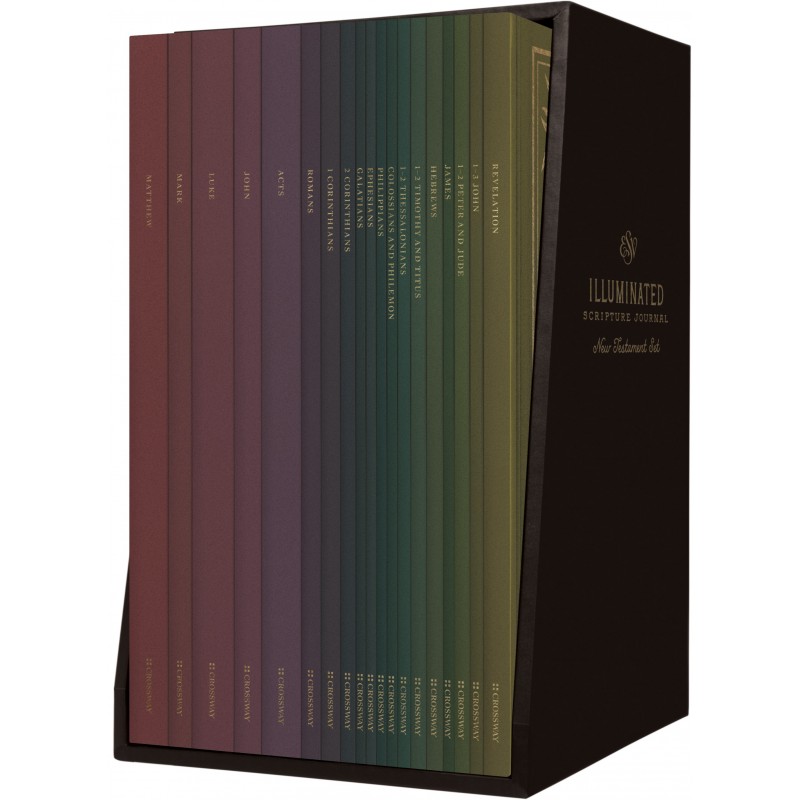 ESV Illuminated Scripture Journals pair the entirety of individual books of the New Testament with a lightly dotted blank page opposite each page of Bible text, providing space to creatively engage with and reflect on the Word of God. Hand-lettered, gold-ink illustrations by renowned artist Dana Tanamachi are interspersed throughout the blank pages, inviting readers to add their own artwork or reflections to each page. These thin, portable notebooks have unique gold-foil stamped covers and are great for art journaling, personal Bible reading and prayer, small-group Bible study, or taking notes through a sermon series.