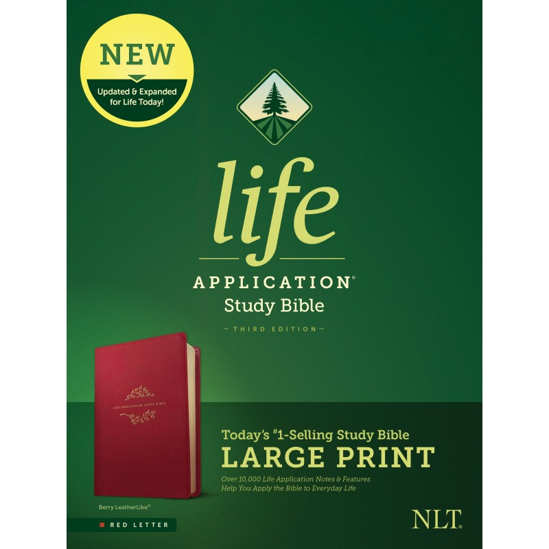 Trusted & Treasured by Millions of Readers over 30 years, the Life Application Study Bible Is Todays #1Selling Study Bible, and a Bible for All Times.Now it has been thoroughly updated and expanded, offering even more relevant insights for understanding and applying Gods Word to everyday life in todays world.Discover How You Can Apply the Bible to Your Life TodayNow with a fresh two-color interior design and meaningfully updated study notes and features, this Bible will help you understand Gods Word better than ever. It answers questions that you may have about the text and provides you practical yet powerful ways to apply the Bible to your life every day.Study the stories and teachings of the Bible with verse-by-verse commentary. Gain wisdom from people in the Bible by exploring their accomplishments and learning from their mistakes. Survey the big picture of each book through overviews, vital statistics, outlines, and timelines, and grasp difficult concepts using in-text maps, charts, and diagramsall to help you do life Gods way, every day.The Large Print editions are for people who enjoy the enhanced readability of larger text.Features: (Enhanced, updated, and with new content added throughout)Now more than 10,000 Life Application notes and featuresOver 100 Life Application profiles of key Bible peopleIntroductions and overviews for each book of the BibleMore than 500 maps & charts placed for quick referenceDictionary/concordanceExtensive side-column cross-reference system to facilitate deeper studyLife Application index to notes, charts, maps, and profilesRefreshed design with a second color for visual clarity16 pages of full-color mapsQuality Smyth-sewn bindingdurable, made for frequent use, and lays flat when openPresentation pageSingle-column formatChristian Workers Resource, a special supplement to enhance the readers ministry effectivenessFull text of the Holy Bible, New Living Translation (NLT), combining the latest biblical scholarship with clear, natural EnglishThe words of Jesus are in red letter.