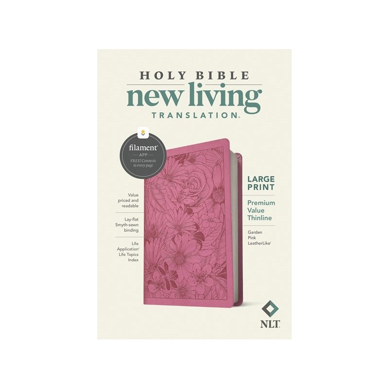The new NLT Large Print Premium Value Thinline Bible, Filament-Enabled Edition has a comfortably readable text, an attractive layout, and an affordable price in a thin and easy-to-carry size. And while it has the same low price of basic text Bibles, the NLT Large Print Thinline now offers much more. It not only features a bold new design and the trusted and much-loved New Living Translation (NLT) but also includes the groundbreaking Filament Bible app. This app enables you to use your mobile phone or tablet to connect every page to a vast array of related content, including study notes, devotionals, interactive maps, informative videos, and worship music.