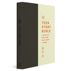Edited by pastor Jon Nielson, the ESV Teen Study Bible features numerous study and resource materials—including 12,000 accessible study notes adapted from the ESV Concise Study Bible, 365 devotions adapted from The Story by Jon Nielson, and 200 sidebars defining key doctrines and helping teens apply Scripture to their own lives. It also has full-page introductions for each biblical book, more than 150 maps and illustrations, an extensive glossary and concordance, and over a dozen topical articles. These features help facilitate deep engagement with the Scriptures, impacting the minds, hearts, and lives of teen followers of Christ.
