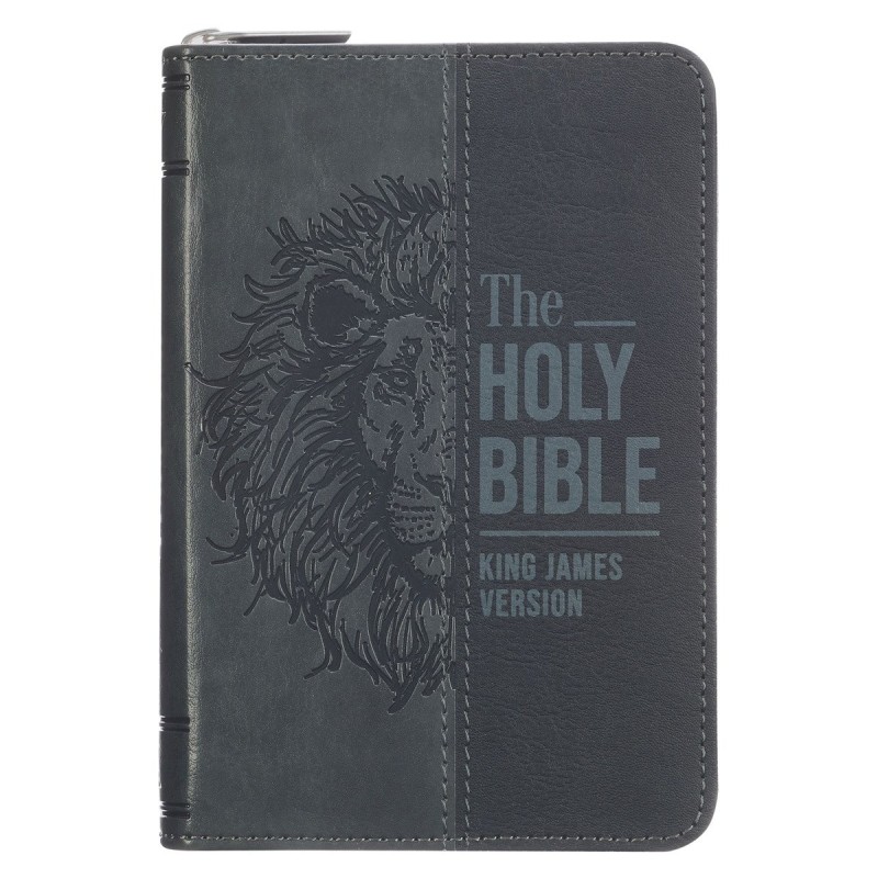 KJV Bible Mini Pocket Faux Leather, Black/Gray w/zipper