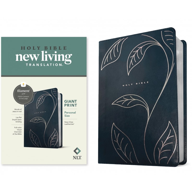 The Tyndale NLT Personal Size Giant Print Bible, Filament Enabled has readable text and an attractive layout in an easy-to-carry size. And while it has the same low price as basic text-only Bibles, the NLT Personal Size Giant Print Bible offers much more. It not only features a bold new design and the trusted and much-loved New Living Translation (NLT) but also includes the groundbreaking Filament Bible app.