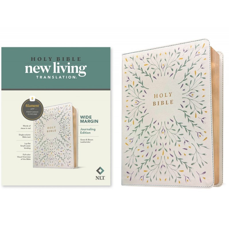 NLT Wide Margin Bible, Filament Enabled is a complete text Bible designed for journaling, note-taking, and reflection that has access to the Filament Bible app, which features thousands of study notes, devotionals, videos, reading plans, and more!