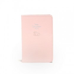 Small, gift-boxed KJV New Testament for baby in imitation pink leather.