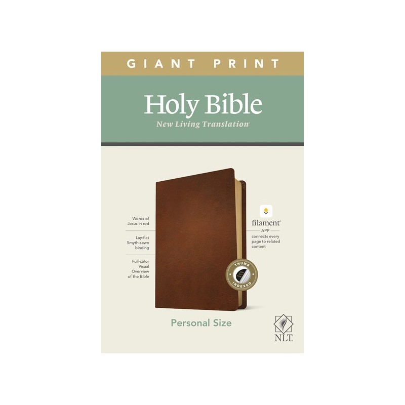 Bible Reading: IlluminatedThe new Tyndale NLT Personal Size Giant Print Bible, Filament-Enabled Edition, has readable text and an attractive layout in an easy-to-carry size. And while it has the same low price as basic, text-only Bibles, the NLT Personal Size Giant Print Bible offers much more. It not only features a bold new design and the trusted and much-loved New Living Translation (NLT) but also includes the groundbreaking Filament Bible app, which turns this Bible into a powerful study and devotional experience, offering more to expand your mind and touch your heart than you can possibly hold in your handat no additional cost, no additional bulk or weight. Read this Bible on its own, or dig deeper with the Filament Bible app. Use your mobile phone or tablet to connect every page to a vast array of related content, including:25,000 study notes350+ videos40+ maps and infographics400+ profiles and articles1,500+ devotionalsLibrary of worship musicSpecial features include:New, easy-to-read page designsFilament content linked to every page!Readable large printHandy, thin sizeWords of Jesus in redQuality lay-flat Smyth-sewn bindingTyndale Verse FinderPresentation pageRibbon markerGilded page edges