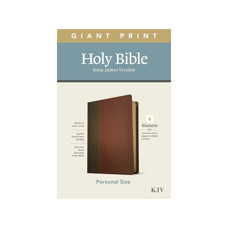 Bible Reading: IlluminatedThe new Tyndale KJV Personal Size Giant Print Bible, Filament-Enabled Edition, has readable text and an attractive layout in an easy-to-carry size. And while it has the same low price as basic, text-only Bibles, the KJV Personal Size Giant Print Bible offers much more. Along with the trusted and revered King James Version (KJV) text, it also includes the groundbreaking Filament Bible app, which turns this Bible into a powerful study and devotional experience, offering more to expand your mind and touch your heart than you can possibly hold in your handat no additional cost, no additional bulk or weight. Read this Bible on its own, or dig deeper with the Filament Bible app. Use your mobile phone or tablet to connect every page to a vast array of related content, including:25,000 study notes350+ videos40+ maps and infographics400+ profiles and articles1,500+ devotionalsLibrary of worship musicSpecial features include:New, easy-to-read page designsFilament content linked to every page!Readable large printHandy thin sizeWords of Jesus in redQuality lay-flat Smyth-sewn bindingTyndale Verse FinderPresentation pageRibbon markerGilded page edges