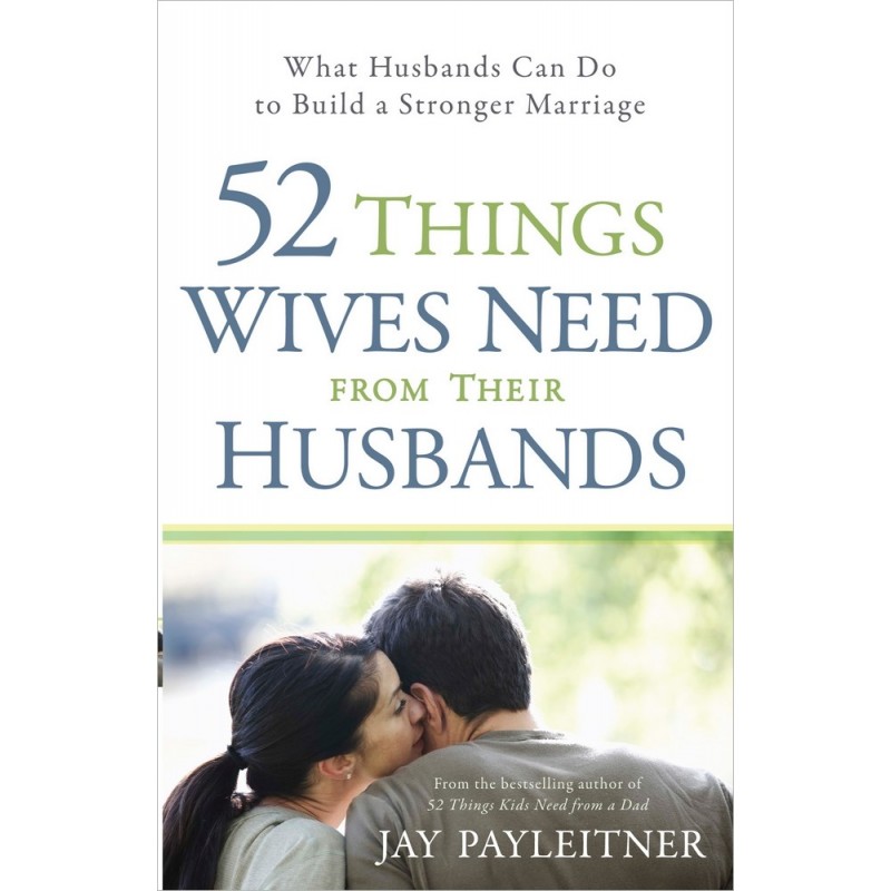 Stir her pots Buy sparkly gifts Be the handyman Stay married Kiss her in the kitchen Leave your mommy Put her second A great gift or mens group resource, 52 Things Wives Need from Their Husbands provides a full years worth of advice. And no chapter will make husbands feel guilty or criticize them for acting like men!