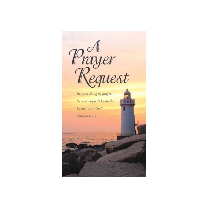Prayer Request cards provide space on the back for obtaining information about congregants' prayer needs. A useful tool for churches in building a relationship with