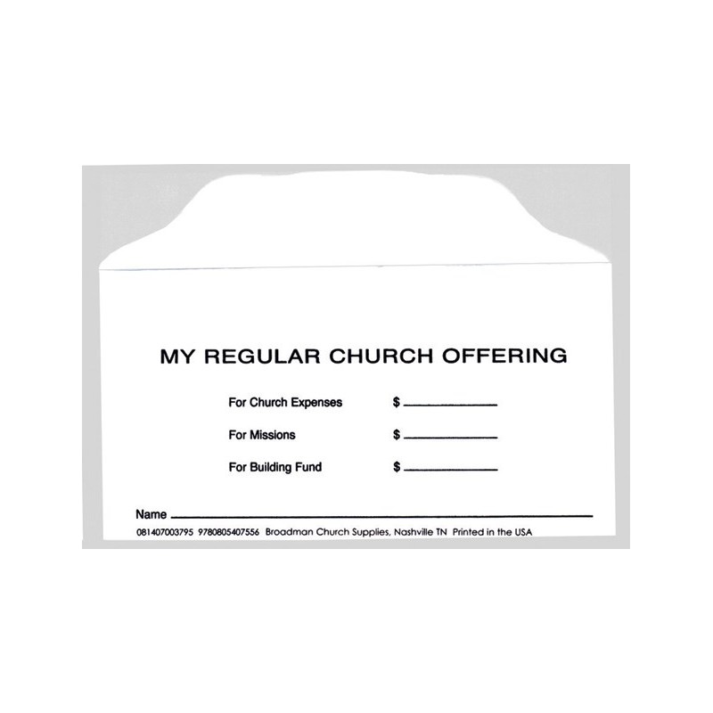 Enables givers to designate to 3 areas: Church Expenses, Missions, & Building Programs Convenient for Contributors & Treasurers! 2.5" x 4.1/4" In package of 100
