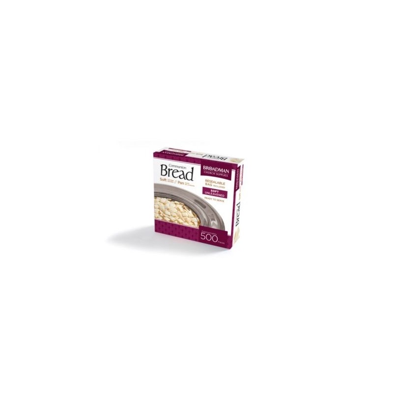 Soft in texture and uniformly sized, this crumb-free unleavened Soft Communion Bread is a great timesaver when preparing the Lord's Supper. Packaged in a resealable stay-fresh plastic bag. Box contains 500 pieces.