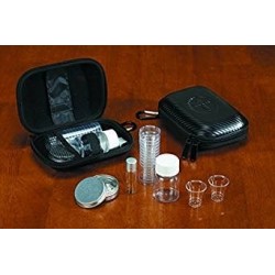 "Zippered Vinyl Case with Caribiner hook, Plastic Cups, Aluminum Box, Glass Oil Vial, Plastic Bottle"