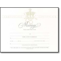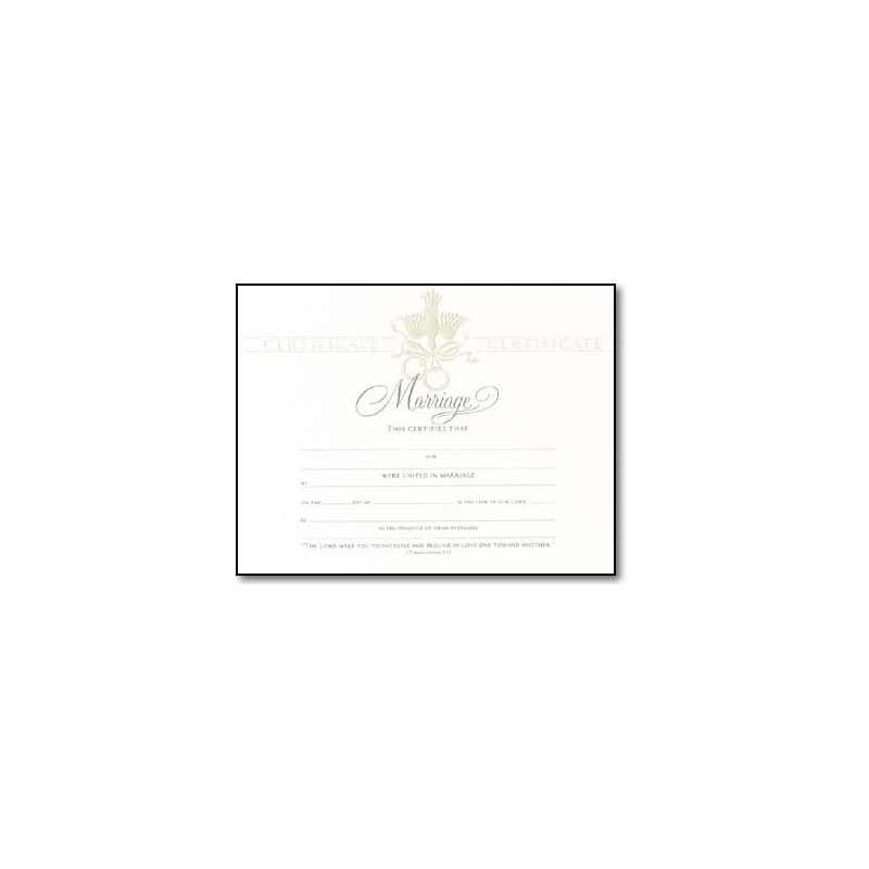 Text MARRIAGE This certifies that (blank line) and (blank line) were united in marriage at (blank line) on the (blank line) day of (blank line) in the year of our Lord (blank line) by (blank line) in the presence of these witnesses (blank line) (blank line) "The Lord make you to increase and abound in love one toward another." 1 Thessalonians 3:12