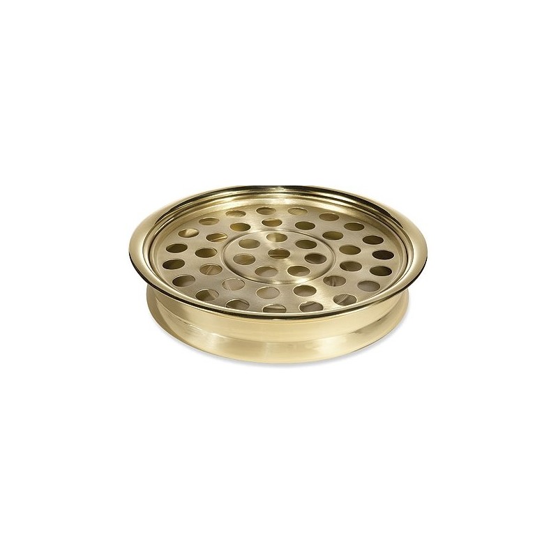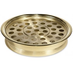 Solid brass communion tray with 40 hole insert. Stackable, durable design with lacquer finish. Exclusive Living Grace Design. Use brass cleaner to wipe clean. Handle with Cotton Gloves #KS721 to preserve the life of your Communion Ware. -- Solid Brass -- 12 3/8" Dia