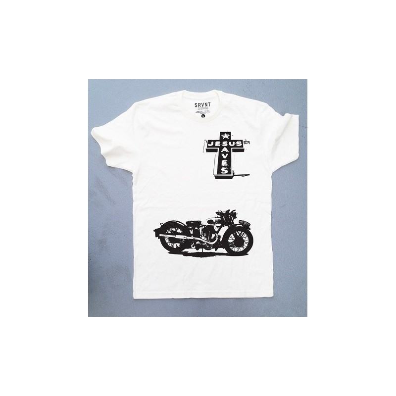 Did you ever wonder how many thousands of souls have been added to the kingdom under one of these vintage neon signs? A signature style from SRVNT, this super-soft boyfriend tee is instantly loved by all who wear it. White colored tee with a black imprint that looks like it is a part of the fabric and not a layer of ink on the surface.
