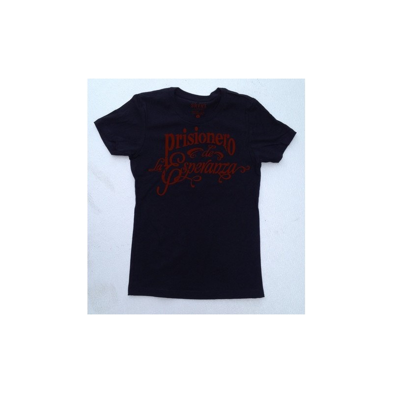 A signature style from SRVNT, this super-soft boyfriend tee is instantly loved by all who wear it. Black colored tee with a brick red imprint that looks like it is a part of the fabric and not a layer of ink on the surface.