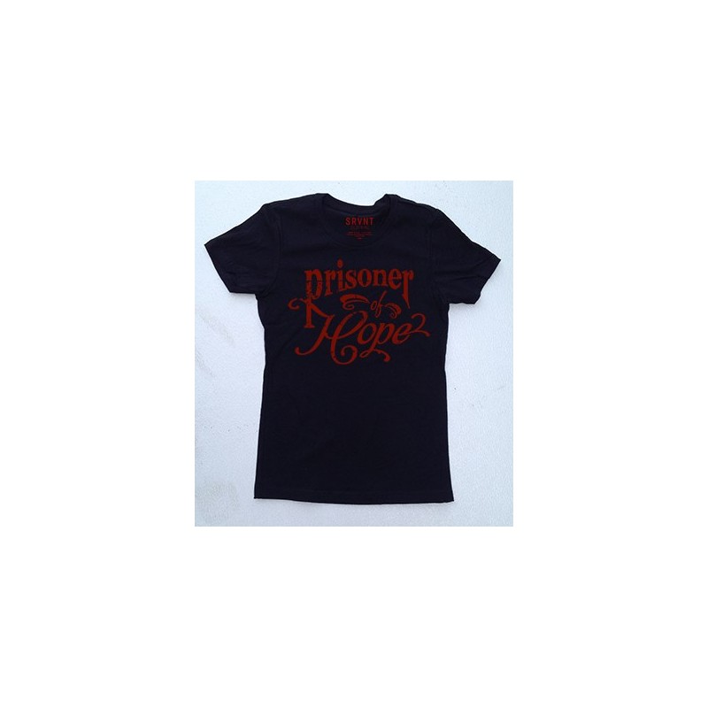 TEE SHIRT-PRISONER OF HOPE WOMENS BOYFRIEND TEE-XS-BLACK W/RED