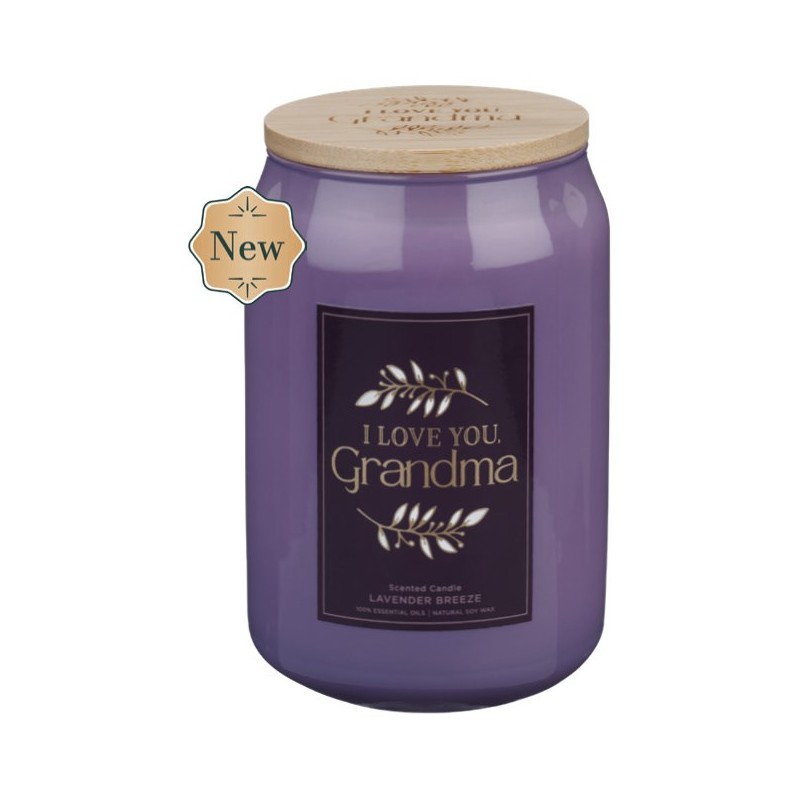 Glass Candle w/ Bamboo Lid I Love You Grandma