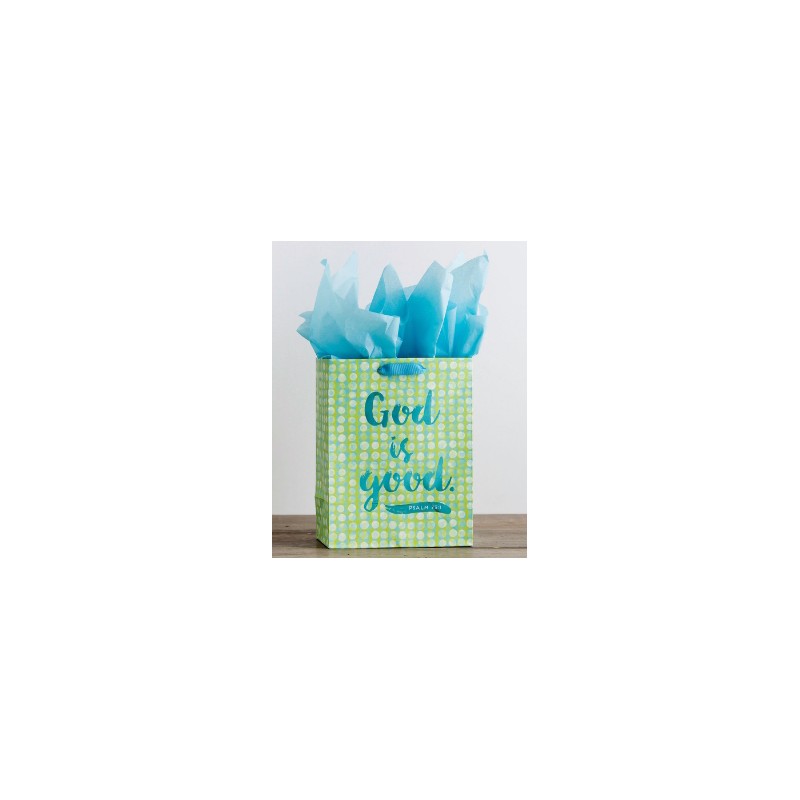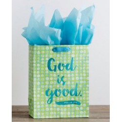Size: 7 21/32" x 9 13/16" x 4 13/16" Medium size Gift bag features gross grain handles and foiling Coordinating tissue included; two sheets New Revised Standard Version Scripture text