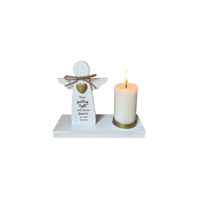 Candle Holder-Memorial w/Angel (Holds 4 x 2" White