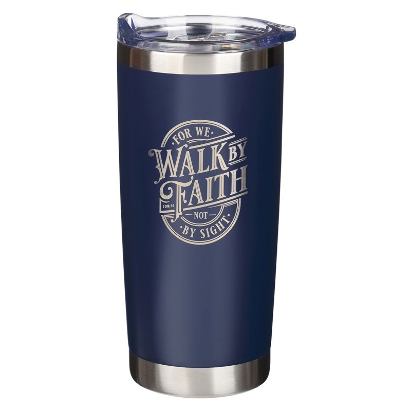 Stainless Steel Tumbler-Navy-Walk By Faith 2 Cor.