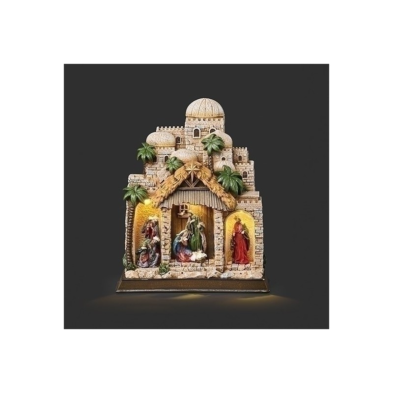 Nativity-Lighted Manger In Town (11"H)