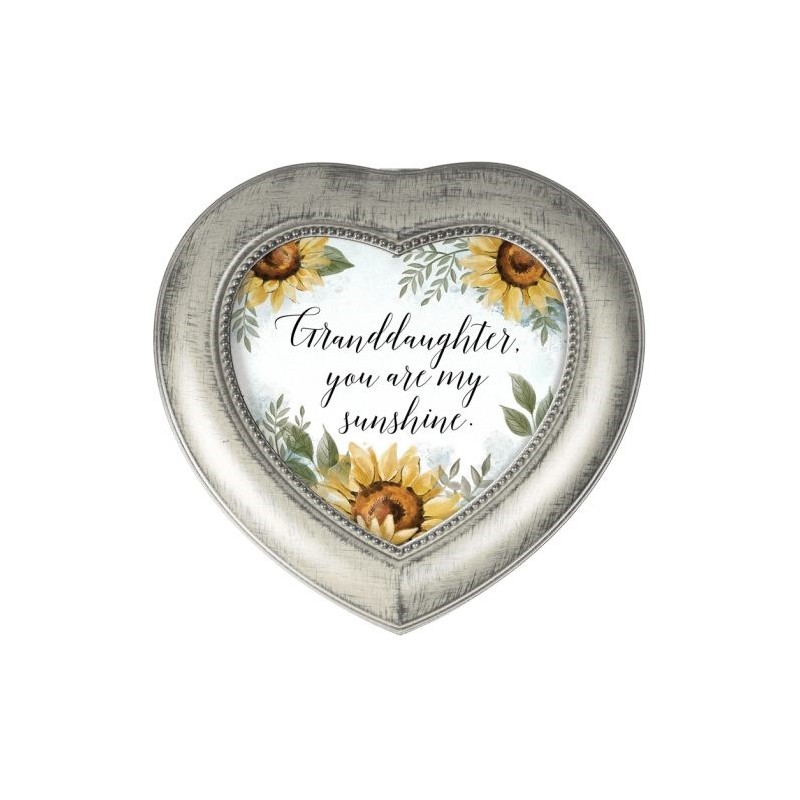 Music box is velvet lined, includes a hand crank music mechanism and plays a popular song! All sentiment cards can be replaced with a personal photograph. Plays "Amazing Grace"