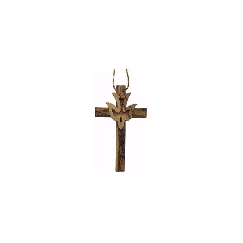 Ornament-Olive Wood-Cross With Dove (3.5")