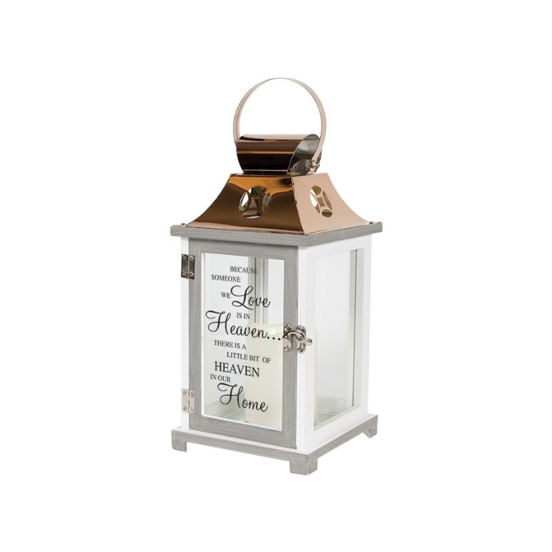 Our Light The Way Memorial Lanterns are made from quality composite wood and a stainless steel copper finish top. They feature a built-in automatic timer which runs for 6 hours on and 18 hours off(3-AAA batteries are NOT included) and are inscribed with sentimental quotes. DO NOT use fire burning candles in the lanterns. Suitable for hanging or free-standing use inside or outside. Recommended as an accent in floral arrangements for many occassions!