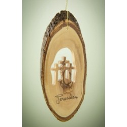 Ornament-Olive Wood-3 Crosses In Bark (4"- 6")