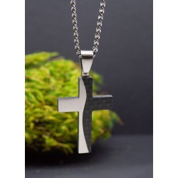 Necklace-Eden Merry-Black-Silver-Wavy Cross