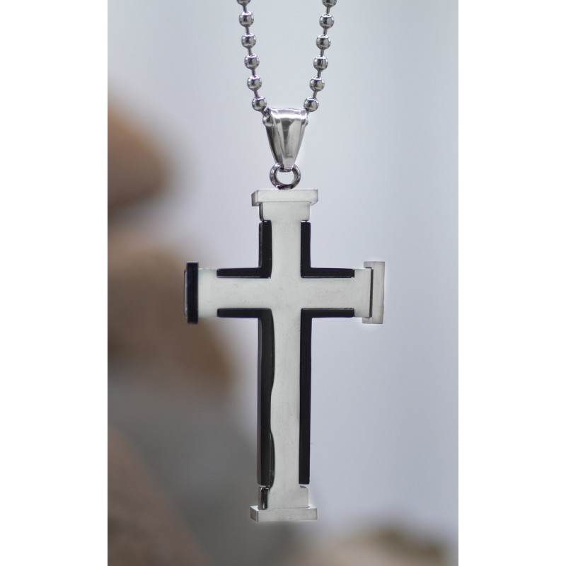 Necklace-Eden Merry-Large Cross-Silver/Black