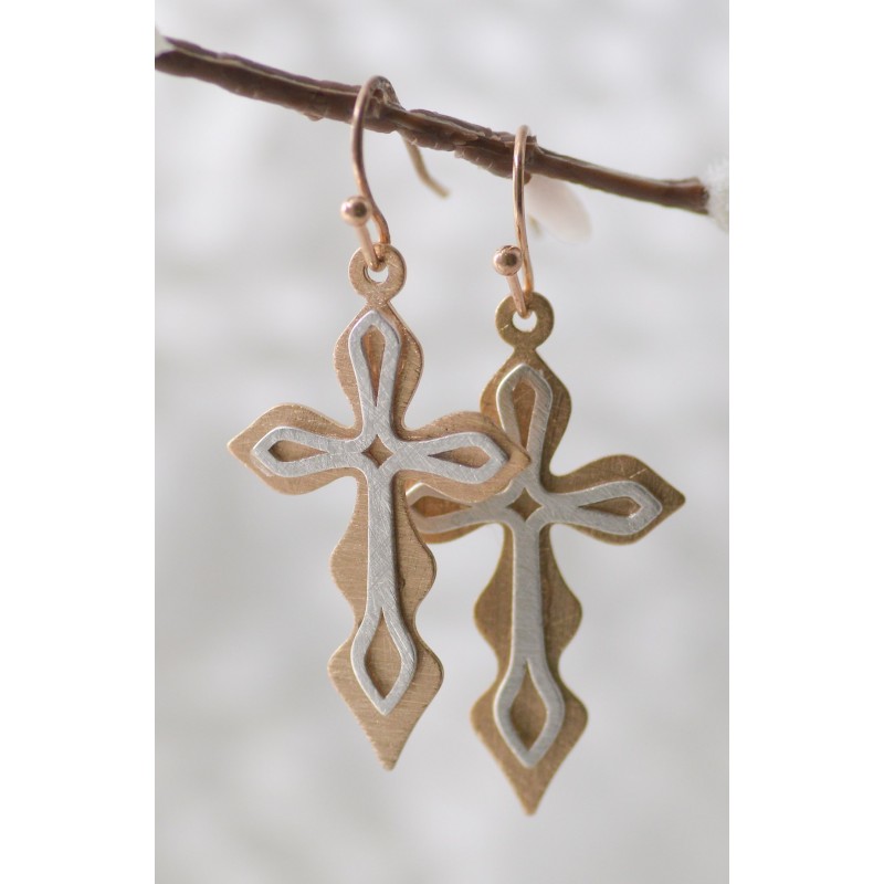 Earrings-Eden Merry-Cross-Silver/Gold