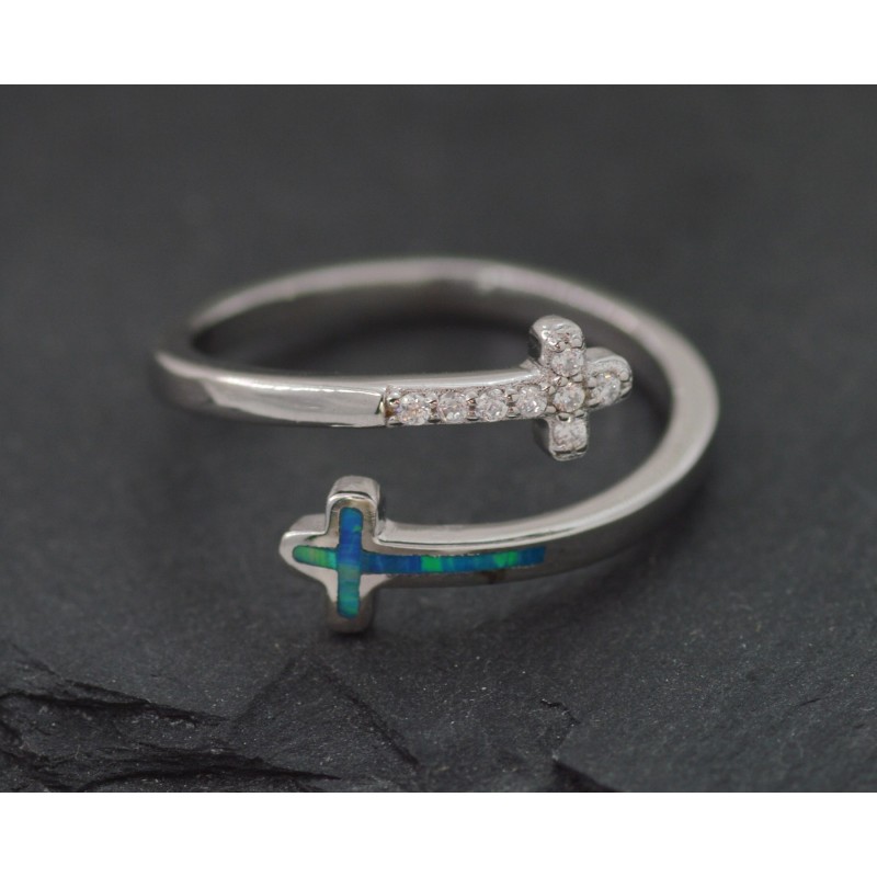 Ring-Eden Merry-Cross-Blue Opal Adjustible