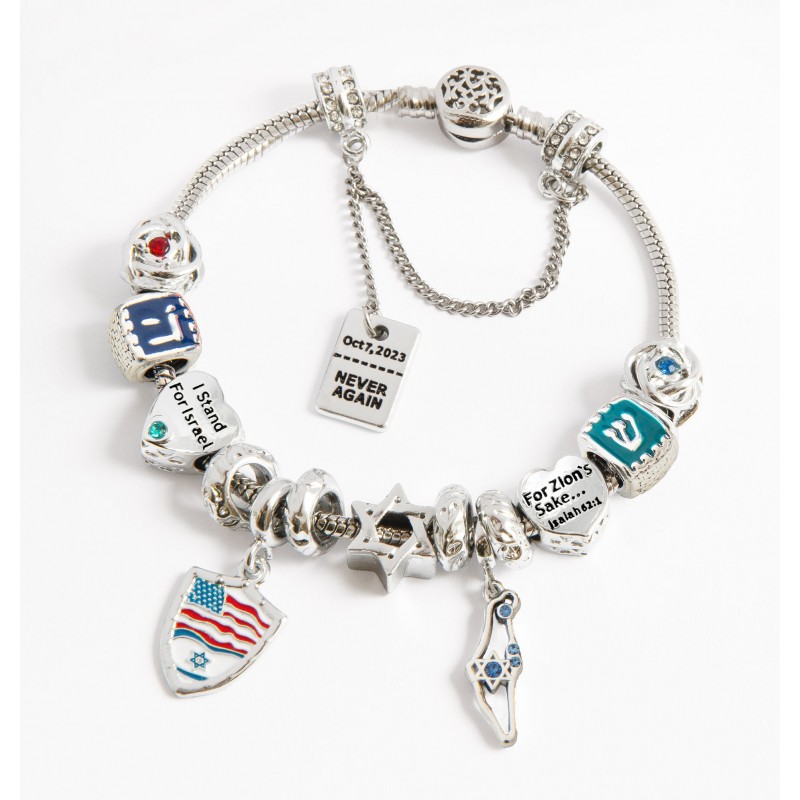 Celebrate unity, faith, and remembrance with the October 7th Commemorative Bracelet. This elegant charm bracelet features intricately designed symbols, including flags, stars, and meaningful emblems that honor heritage and resilience. Each charm tells a story, making it a powerful keepsake or gift for someone special. Crafted with premium materials, its both a stunning accessory and a heartfelt reminder of connection and strength.
