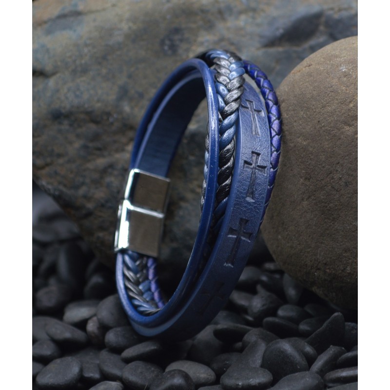 Bracelet-Eden Merry-Men's Leather-Stamped Cross-Bl