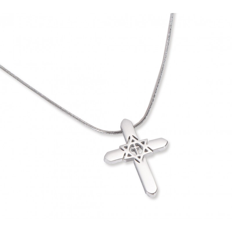 Necklace-Cross & Star Of David-Stainless Steel Sil
