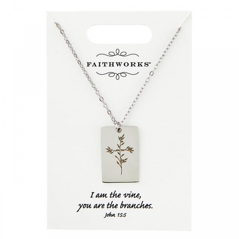 Necklace-Rectangle-I Am The Vine...-Silver Plated
