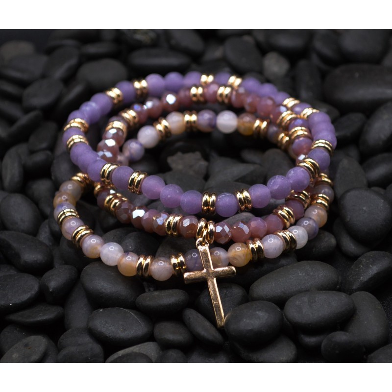 Bracelet-Eden Merry-Cross-Three Strand-Violet