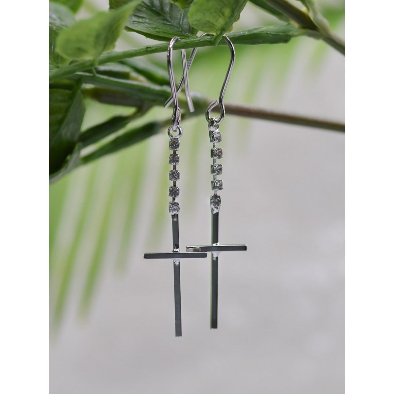 Earrings-Eden Merry-Cz Crystal-Cross-Silver