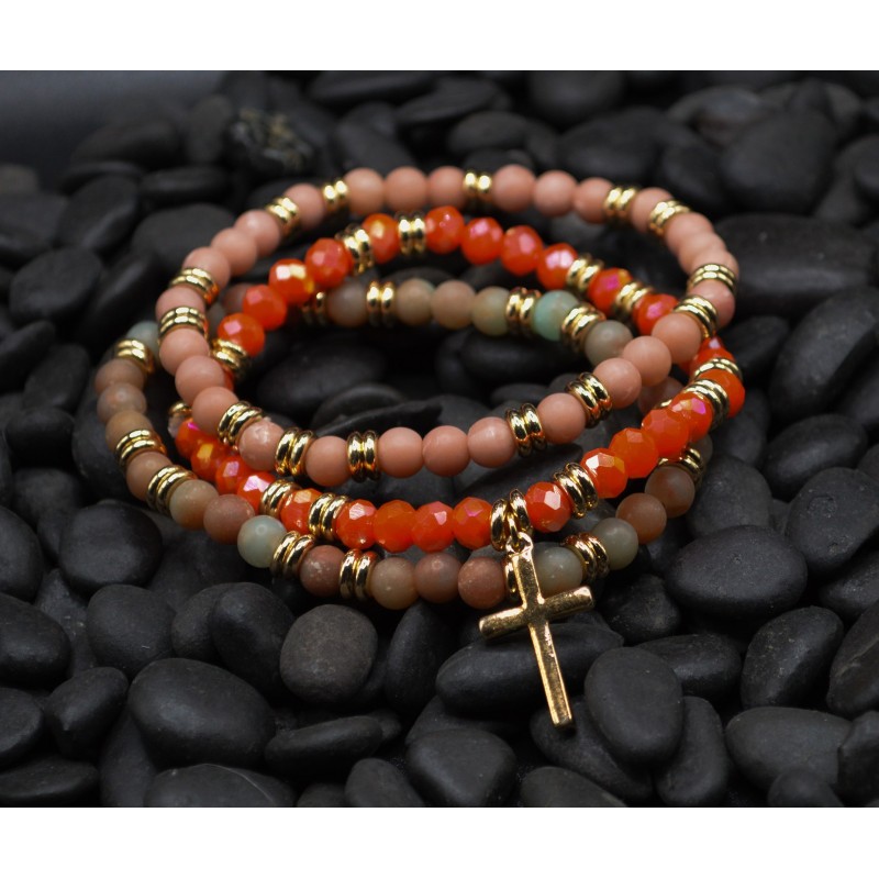 Bracelet-Eden Merry-Cross-Three Strand-Coral